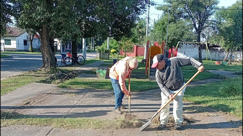 Las cuadrillas realizaron trabajos de desmalezamiento, limpieza de cordones y veredas y además, mantenimiento general en calles y plazas.